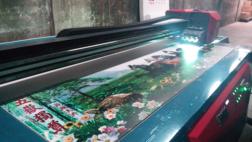 近期,有位在中山準備創業的賴先生就通過朋友的介紹前來東方龍科公司現場考察,離開前便訂購了臺理光2513UV平板打印機。第二天,公司便派遣業務經理與工程師護送印刷機器前往中山,當天送達后便幫賴總調試機器,并現場測試。下圖便是測試現場情景: